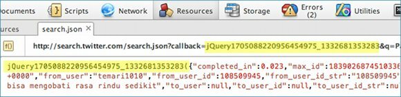 For example, the following is a request to Twitter's JSON-P web service to retrieve five Tweets that mention Paddington Bear:
